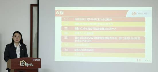 會上,公司副總經(jīng)理黃小潯傳達了紡織公司2026年工作會議精神,使全體干部職工進一步明確了紡織公司戰(zhàn)略方向與年度重點,為利工民公司新的一年各項工作開展確立了行動綱領(lǐng)、統(tǒng)一了思想基調(diào)。