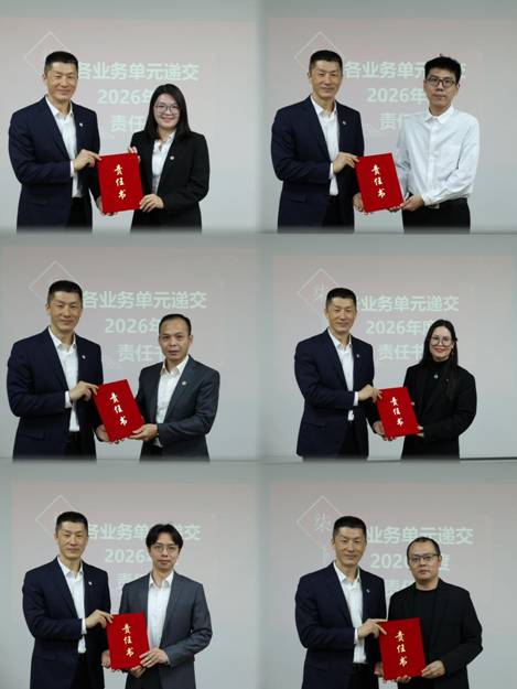 各業(yè)務(wù)單元、部門向公司領(lǐng)導(dǎo)遞交2026年度各項目標管理責任書。